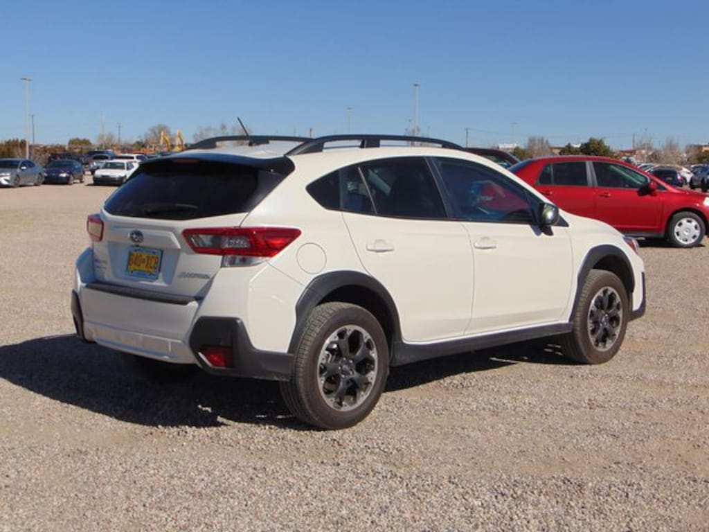 The **Crystal White Pearl exterior** highlights the Crosstreks rugged yet sporty design. Its raised ground clearance, durable lower body cladding, and bold wheel arches give it a confident stance thats ready for both city streets and back roads. The Crosstreks compact size makes it easy to maneuver and park, while roof rails provide added practicality for carrying bikes, skis, or cargo for your next adventure. The distinctive styling blends modern design with Subarus signature outdoor-ready character.