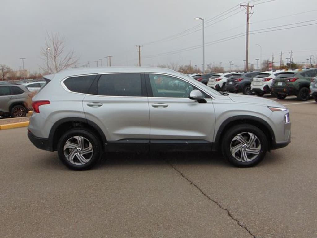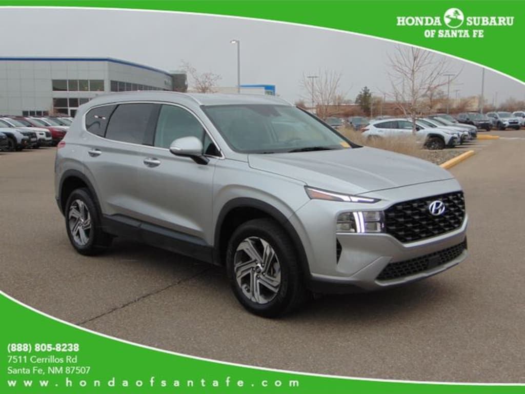 The Shimmering Silver Pearl 2023 Hyundai Santa Fe SEL AWD delivers modern style, advanced technology, and everyday versatility in a midsize SUV designed to elevate every drive. Finished in elegant Shimmering Silver Pearl, this Santa Fe stands out with sleek body lines, a bold front grille, and refined styling that gives it a confident and upscale presence on the road. Its sophisticated design pairs perfectly with practical functionality, making it an excellent choice for families, commuters, and adventure seekers alike.